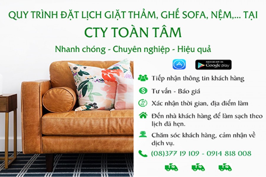 Nếu bạn đang sinh sống tại Bình Dương mà gặp phải khó khăn hay có nhu cầu về giặt thảm, giặt nệm, giặt ghế sofa, vệ sinh nội thất xe hơi,... thì từ nay đã có Toàn Tâm, chúng tôi chắc chắn sẽ là lựa chọn tuyệt vời dành cho bạn. Hãy liên hệ ngay theo hotline 094 671 2468 để được tư vấn và báo giá chi tiết nhé.